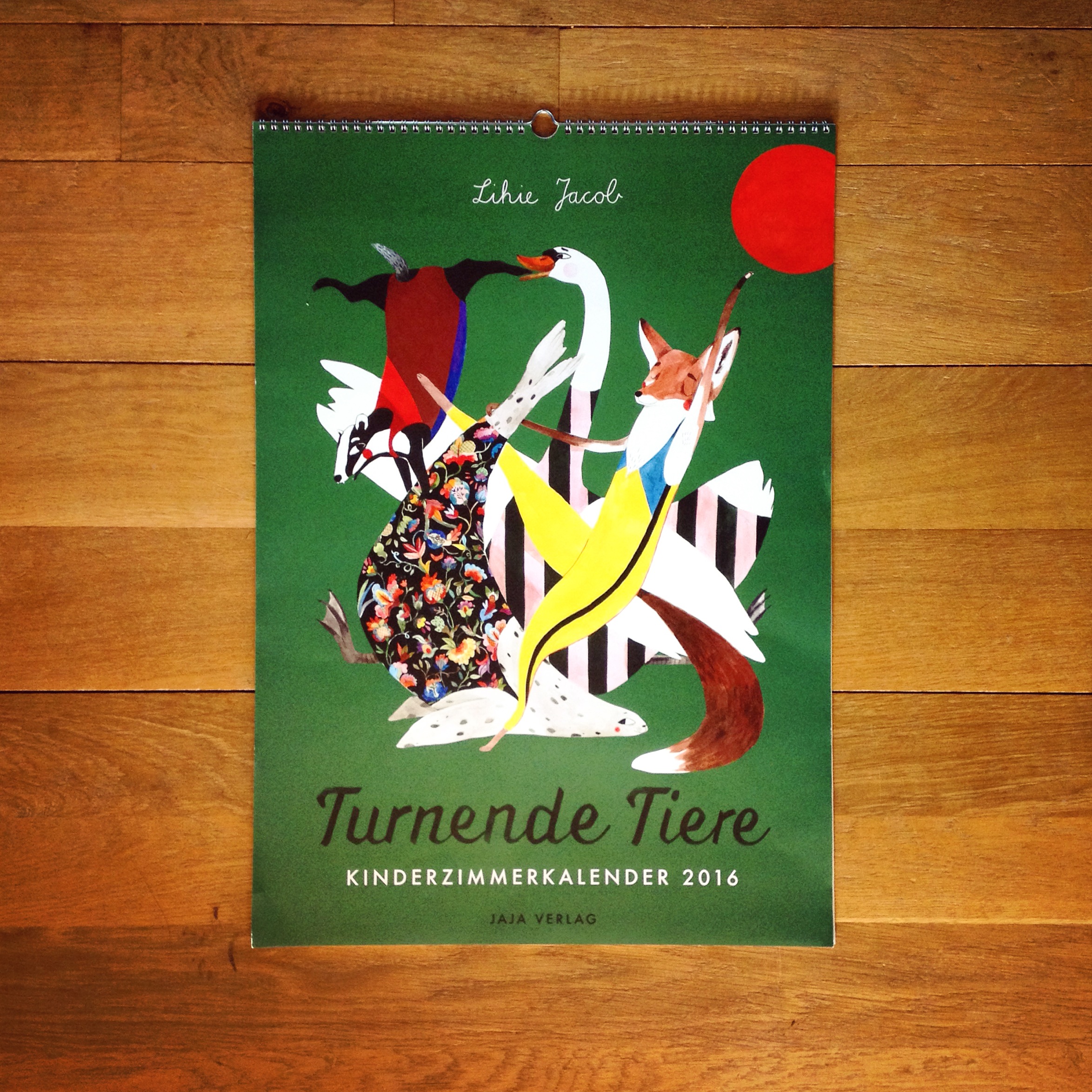Wandkalender „Turnende Tiere“ von Lihie Jacobs, erschienen im Jaja Verlag, Format 42 cm x 59,4 cm hoch, 13 Blätter, Kalenderringbindung, 29,- Euro