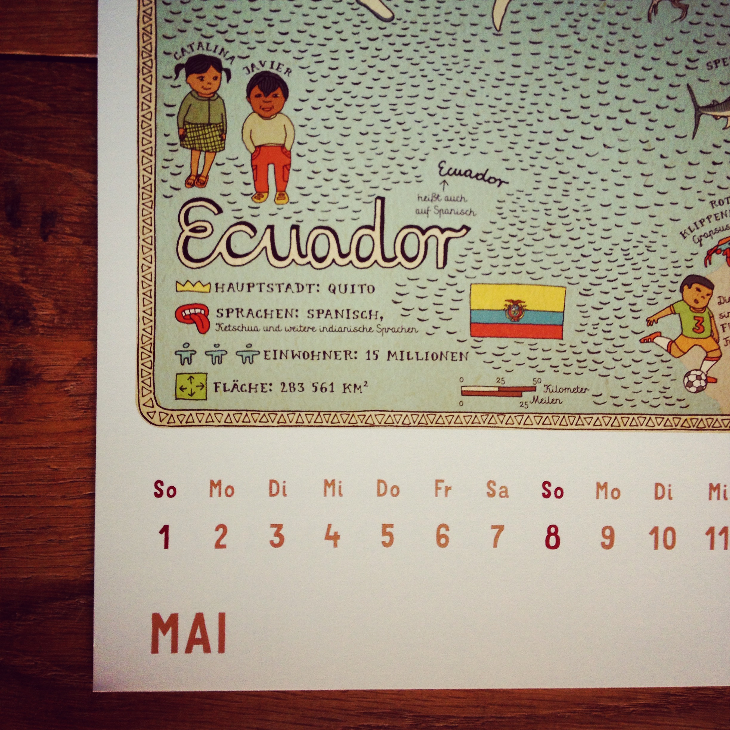 „Alle Welt“ – das Buch von Aleksandra und Daniel Mizielinscy, mit dem alles begann, ist heute kaum aus den Kinderzimmern wegzudenken. Die Liebe zum Detail, aber auch der feine Humor, der den gut recherchierten Illustrationen innewohnt, lässt einen immer wieder Neues auf den Karten entdecken. Das Künstlerpaar, beide sind 1982 in Polen geboren, gründete schon während der Studienzeit das Hipopotam Studio, in dem sie sich seitdem mit Buchgestaltung, Webdesign und Typographie beschäftigen. Auch dieses Jahr gibt es wieder den passenden Kalender – mit neuen Karten – im herrlichen Großformat zum Sattsehen.