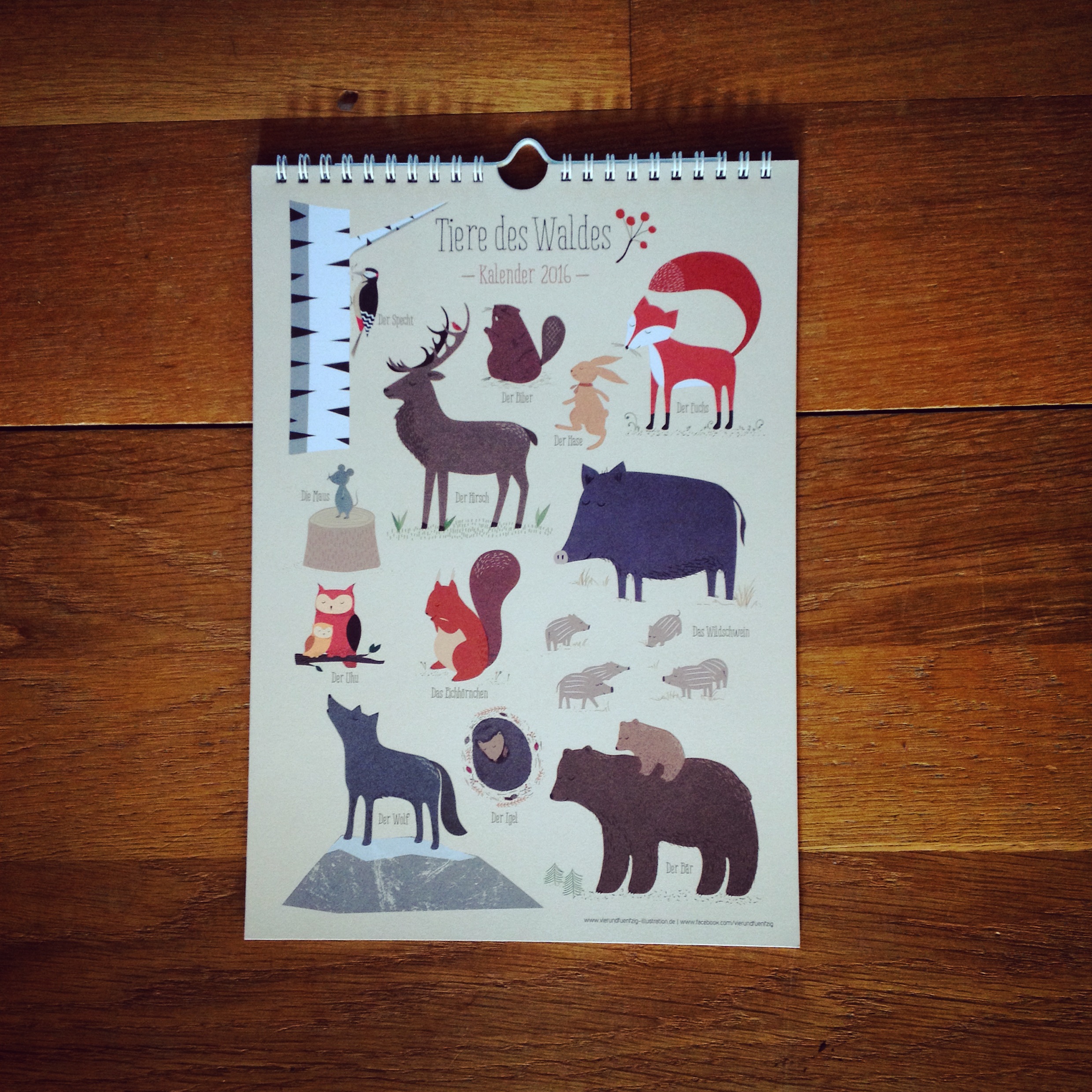 Wandkalender „Tiere des Waldes 2016“ von Sandy Lohß, Format 21 cm x 29,7 cm, 13 Blätter, Spiralbindung, 15,90 Euro