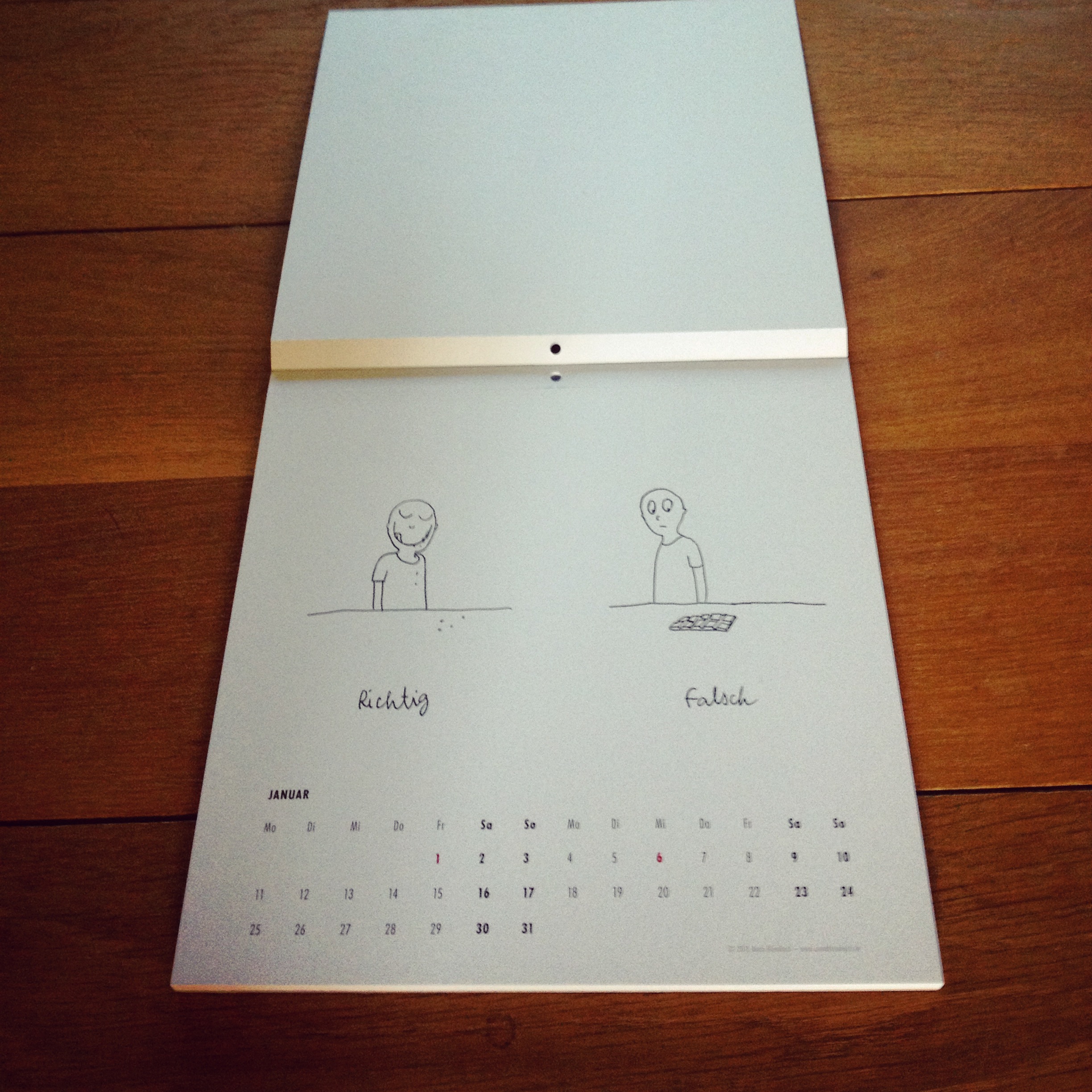 Wandkalender „Richtig & Falsch“ von Anna Blombach, Format 21 cm x 21 cm, 13 Blätter, Leimbindung mit Abreißkante, 12,95 Euro