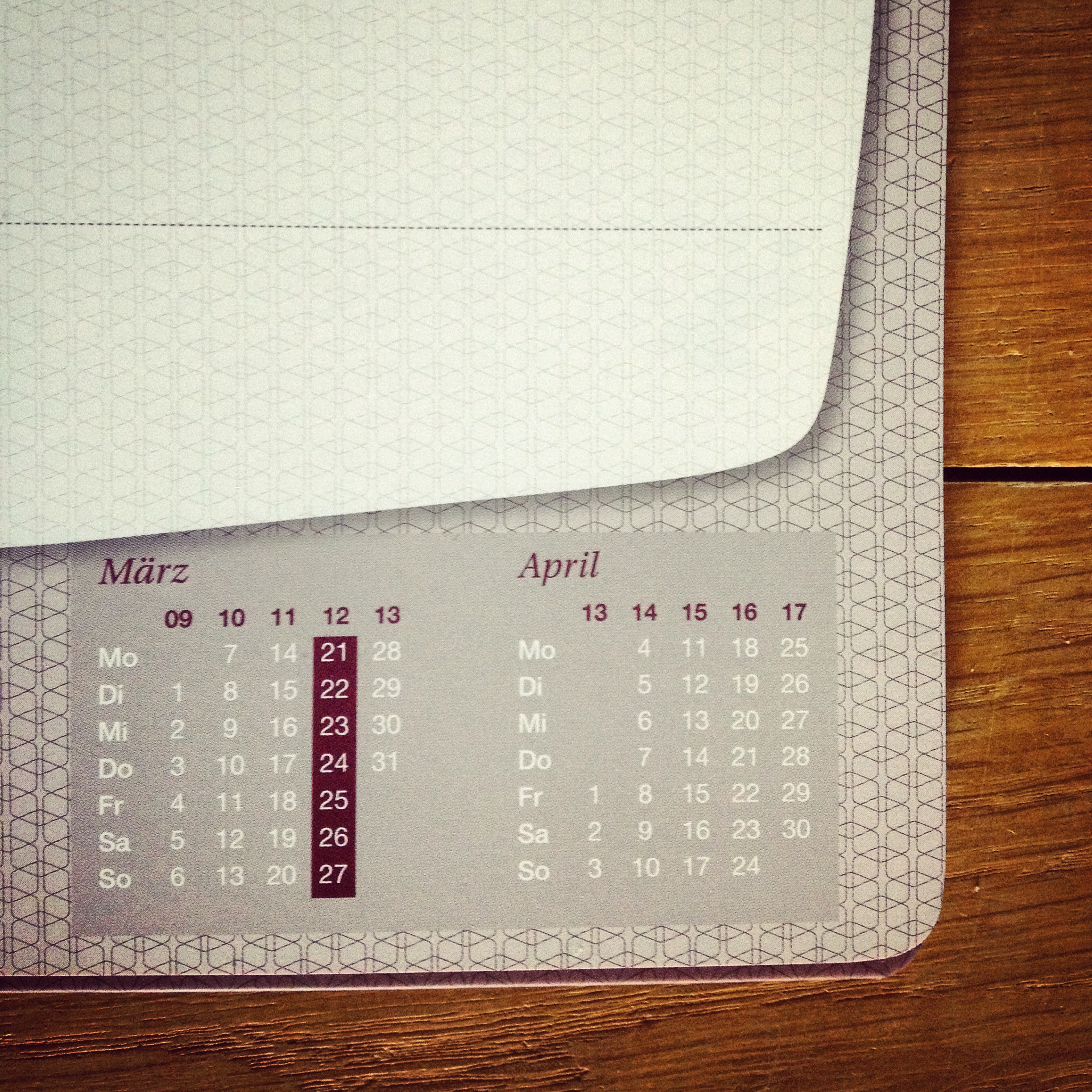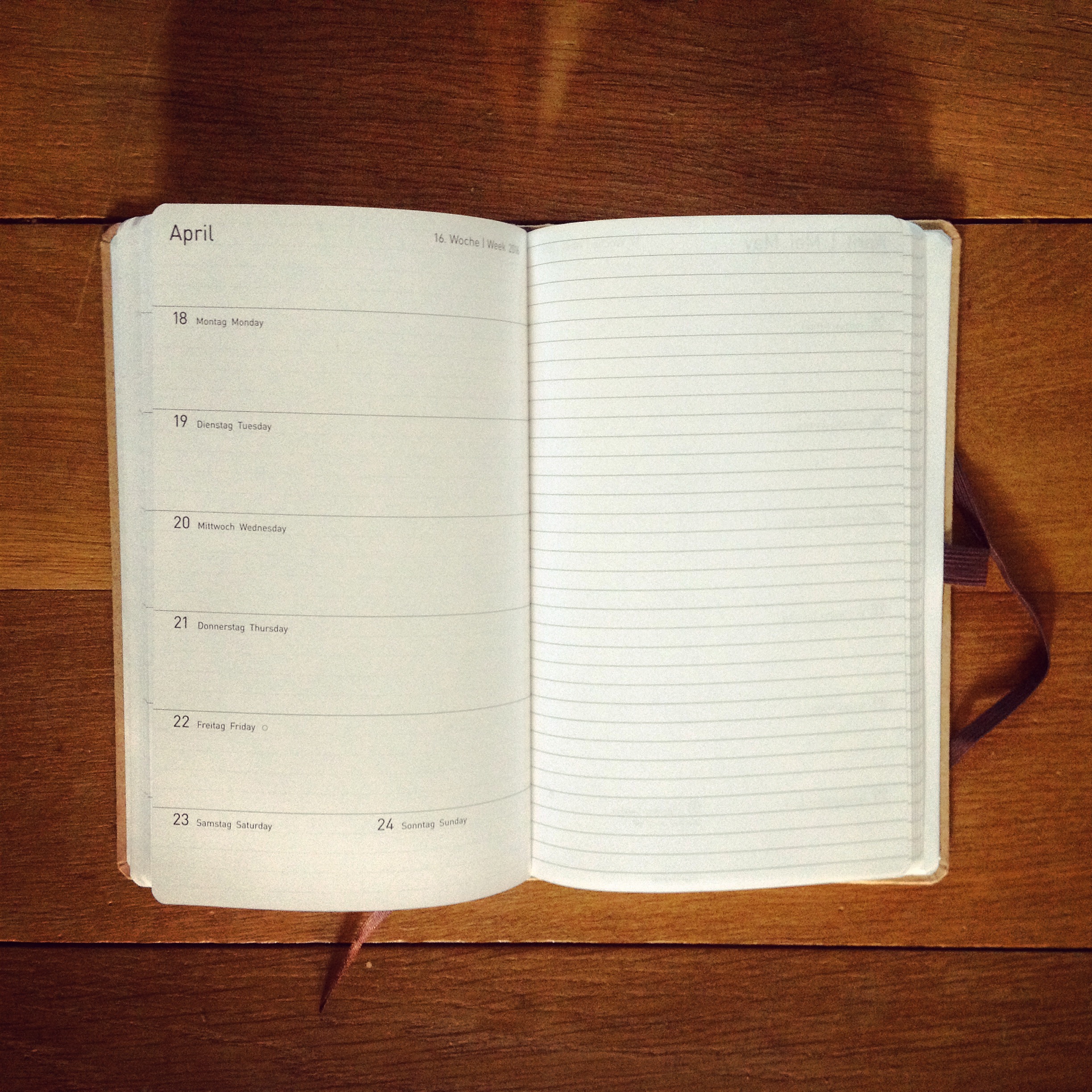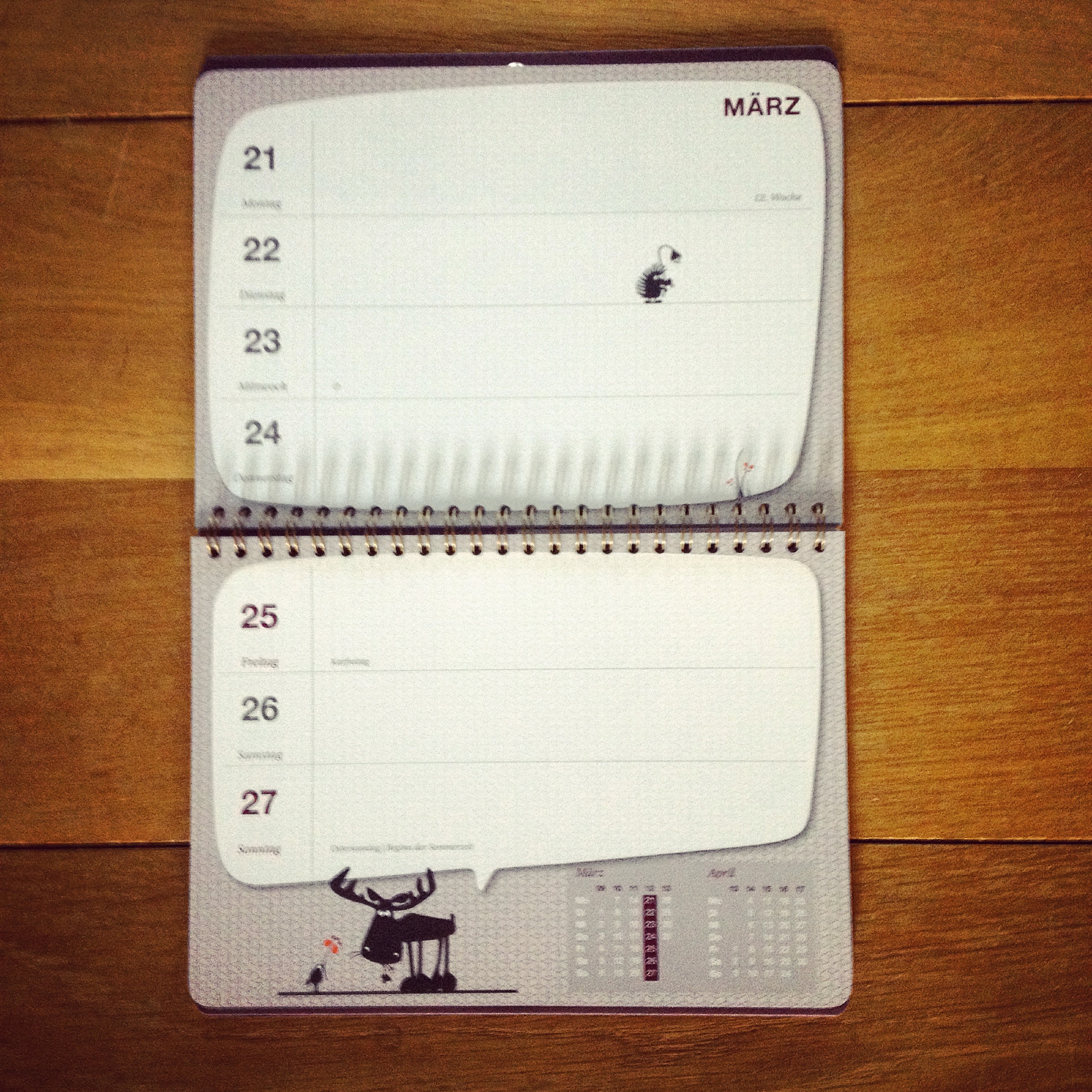 „My little Diary“ hingegen ist vielleicht nicht ganz so praktisch, dafür aber ein echtes Schmuckstück – innen wie außen. Der Umschlag aus Wurzelholz macht den Kalender sehr robust, durch die offene Fadenbindung lässt sich das Buch toll aufklappen und eignet sich so auch wunderbar als Tischkalender. Eine Woche ist jeweils eine wunderschön gestaltete Doppelseite, es gibt Raum für Notizen im hinteren Teil und eine unauffällige, in den hinteren Deckel eingearbeitete Tasche für die kleinen Geheimnisse.