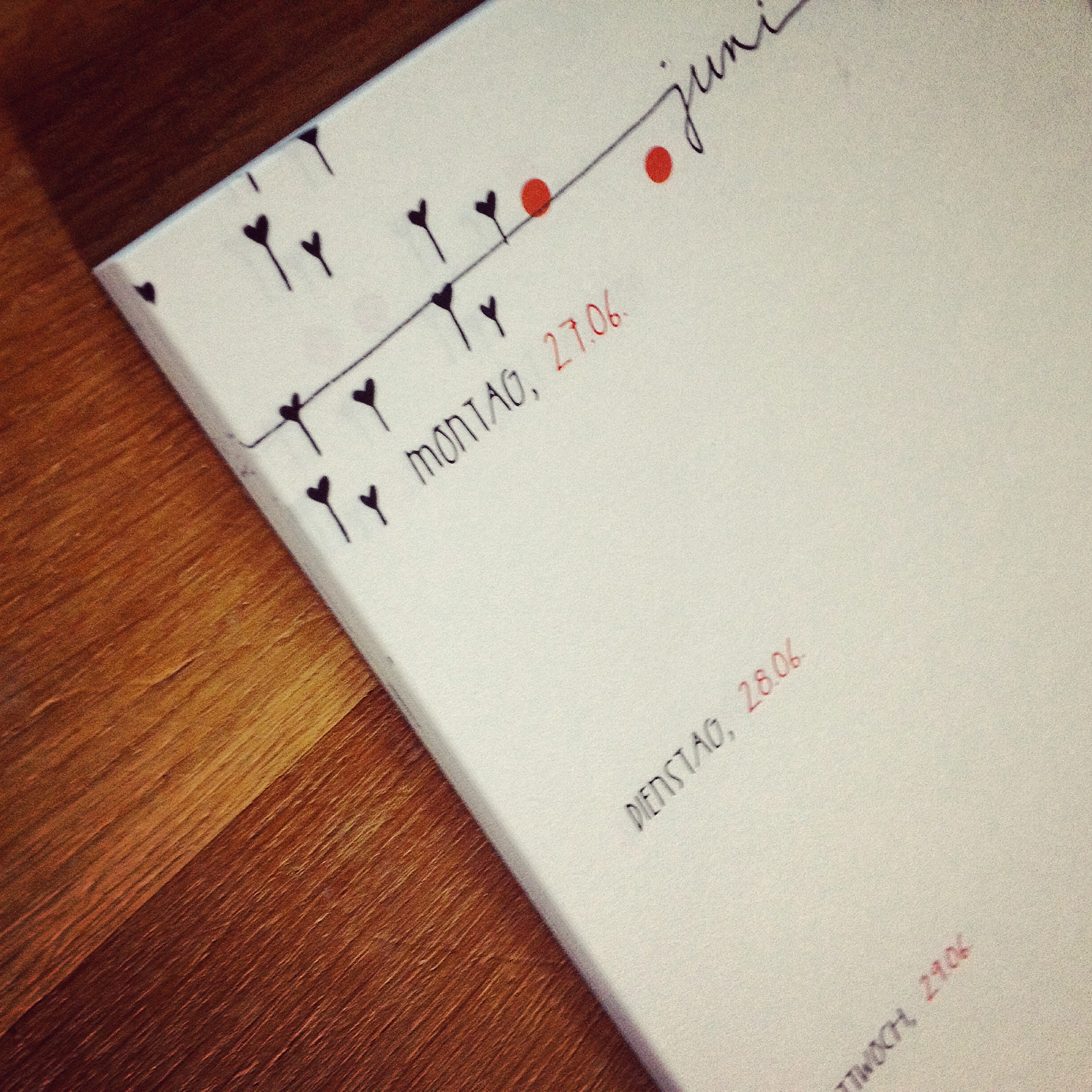 „My little helper“ von Herrn Pfeffer ist einmalig, weil handbemalt, praktisch und natürlich hübsch anzusehen. Der Einband ist aus Naturkarton, das Kalendarium nach Wochen aufgeteilt, mit jeweils einer Notizseite pro Woche. Außerdem befindet sich am inneren hinteren Buchdeckel eine kleine Tasche zum Verstauen von kleine Fundstücken, Fotos, Liebesbriefen oder ähnlichem. Mit Lesebändchen, Stifthalter und Gummiband ist der kleine Helfer für das Leben unterwegs bestens gerüstet.